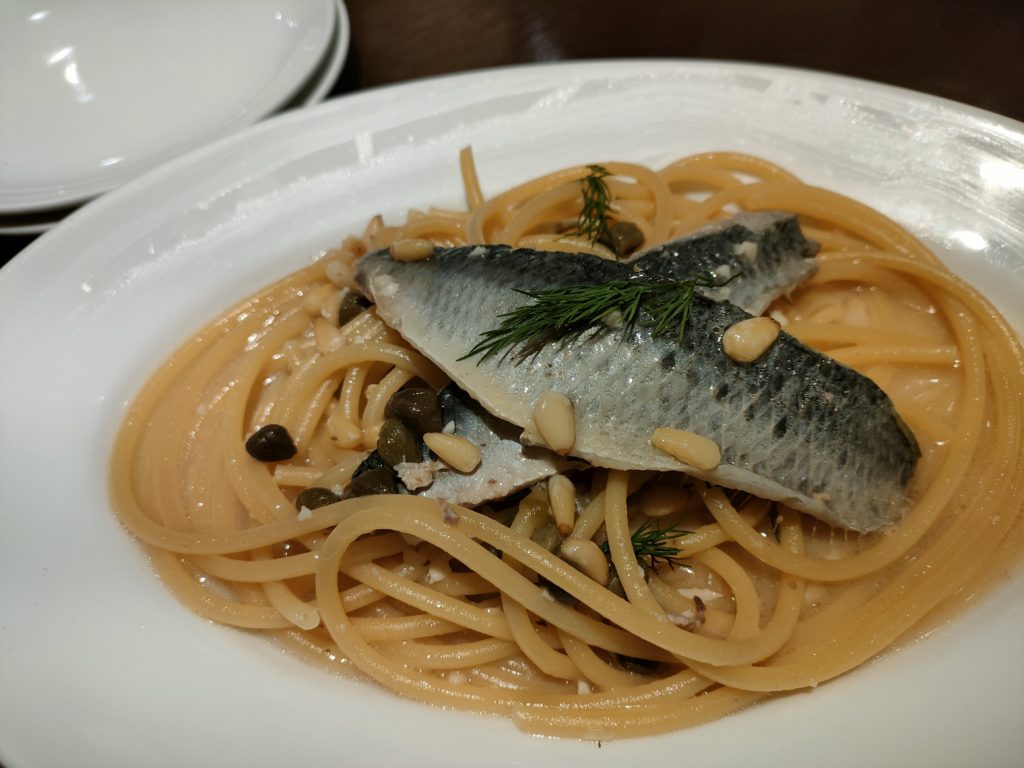 奇しくも今日は鰯の日。なので鰯と松の実のスパゲティーをオーダーしました。